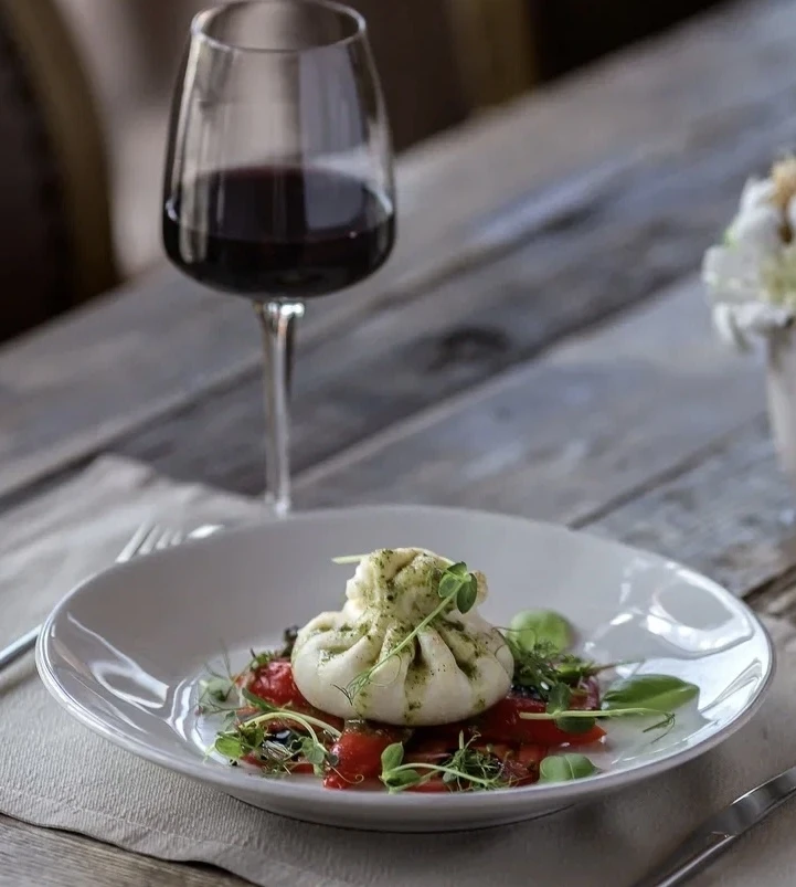 Сливочная буратта с томатами и печеным перцем